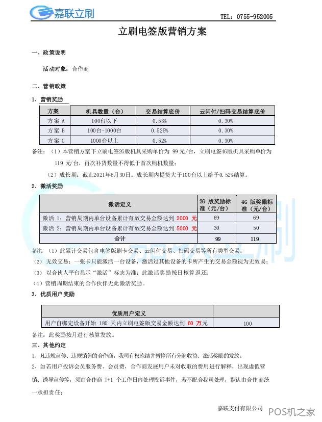 立刷电签POS机费率