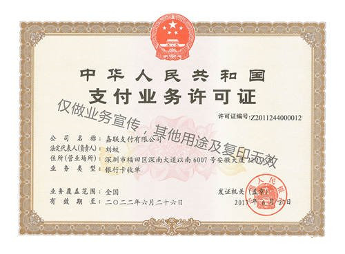 立刷pos机是由嘉联支付有限公司推出的产品,嘉联支付有限公司于2009年正式成立,注册资本为2亿元人民币,是中国人民银行批准授予《支付业务许可证》(许可证编号:Z2011244000012)的第三方金融支付机构。嘉联支付独创POS端营销与收单系统无缝对接的服务模式,提供多种型号的智能POS机,为中小企业、行业客户、金融机构和投资者提供POS收单、金融支付、理财管理、便民应用等综合性的金融支付服务。