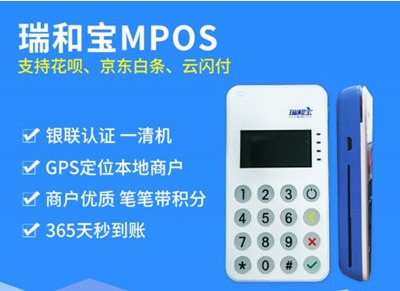 瑞和宝pos机是通过银行卡监测中心认证,支持银联标识卡刷卡收款的一款金融工具,能做到T+0秒到,与18家银行有合作,包括中国邮政、中国银行、宁波银行、工商银行、华夏银行、招商银行、交通银行、建设银行等。